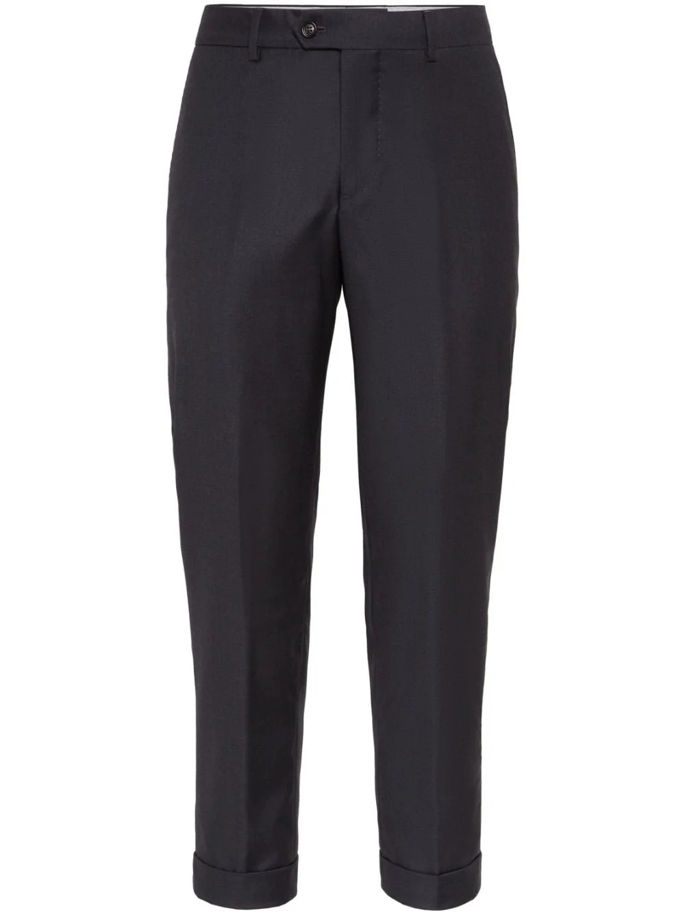 tapered-leg wool trousers Highlights - Anthracite grey - Virgin wool - Tailored design - Belt loops - Concealed fly and button fastening - Two side slit pockets - Pressed crease - Two rear button-fastening jetted pockets - Tapered leg - Turn-up hem Made in Italy Composition Virgin Wool 100% Washing instructions Dry Clean Only