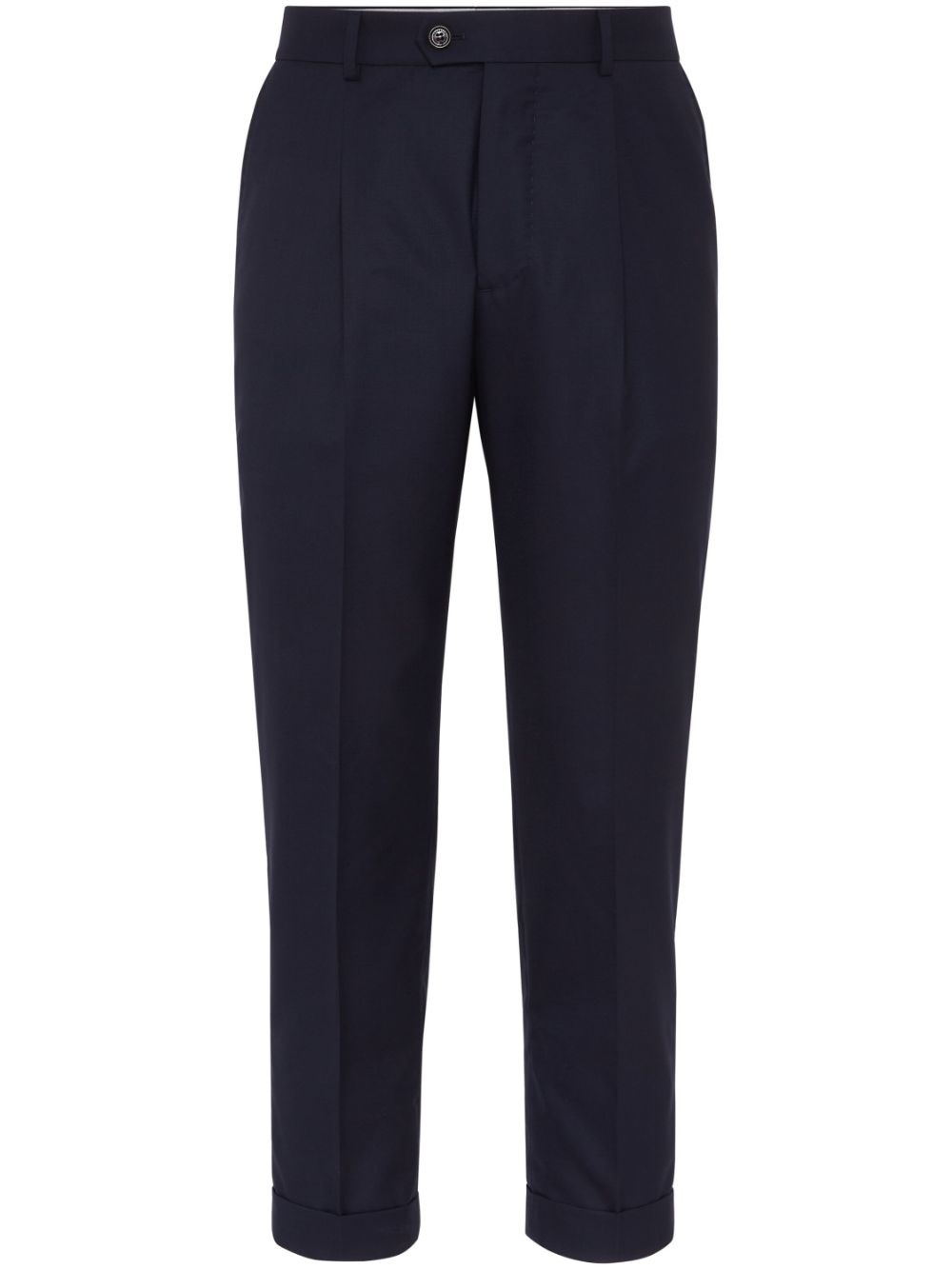 tapered-leg wool trousers Highlights - Midnight blue - Virgin wool-silk blend - Tailored cut - Belt loops - Concealed fly and button fastening - Two side slit pockets - Pressed crease - Two rear jetted pockets - Tapered leg - Turn-up hem Made in Italy Composition Virgin Wool 85%, Silk 15% Washing instructions Dry Clean Only