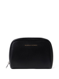 textured-leather wash bag Highlights - Black - Top zip fastening - Gold-tone logo lettering - Rounded silhouette - Main compartment Made in Italy Composition Outer: Leather 100%