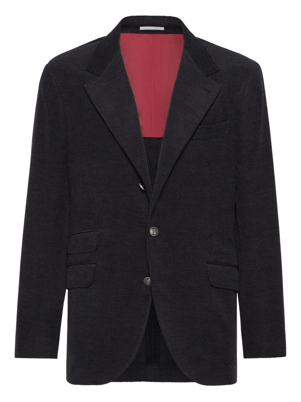 three-button corduroy blazer Highlights - Black - Corduroy texture - Three-button fastening - Flap pockets - Notched lapels - Jetted breast pocket Made in Italy Composition Wool 77%, Silk 20%, Fabric 3% Washing instructions Specialist Cleaning