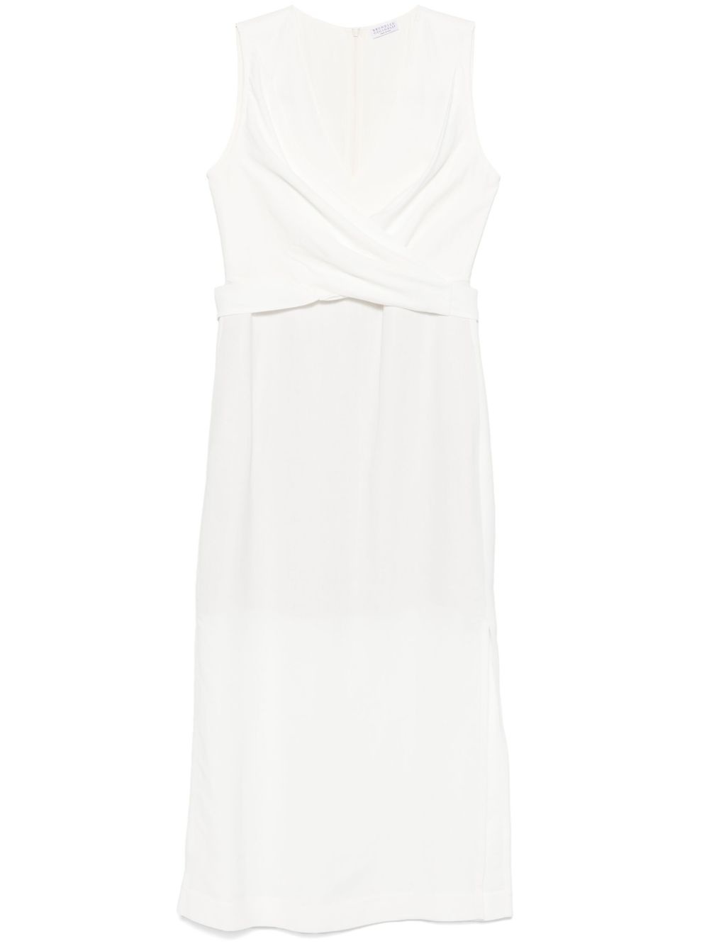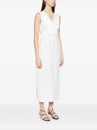 twill wrap midi dress Highlights - White - Concealed rear zip fastening - V-neck - Two side slit pockets - Short side slits Made in Italy Composition Lining: Acetate 74%, Silk 26% Outer: Eco Brass 100%, Viscose 73%, Linen/Flax 27% SIZE & FIT Model measurements Height 5 ft 10 in(1.78 m) Bust/Chest 33.85 in(86 cm) Hips 36.61 in(93 cm) Waist 26.77 in(68 cm) FittingInformation Designed for a slim fit that sits just away from the body offering a close yet comfortable fit The adjustable tie waist gives a more adaptable and personalised fit Made from a midweight non-stretch fabric