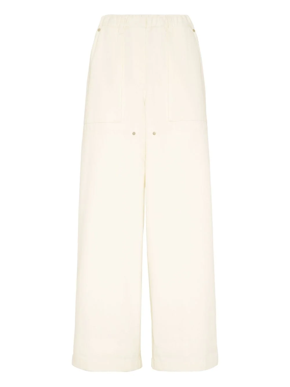 utility trousers Highlights - Panama - Cotton blend - Elasticated waistband - Belt loops - Front patch pockets - Rear patch pockets Made in Italy Composition Cotton 72%, Wool 15%, Fabric 13% Washing instructions Specialist Cleaning