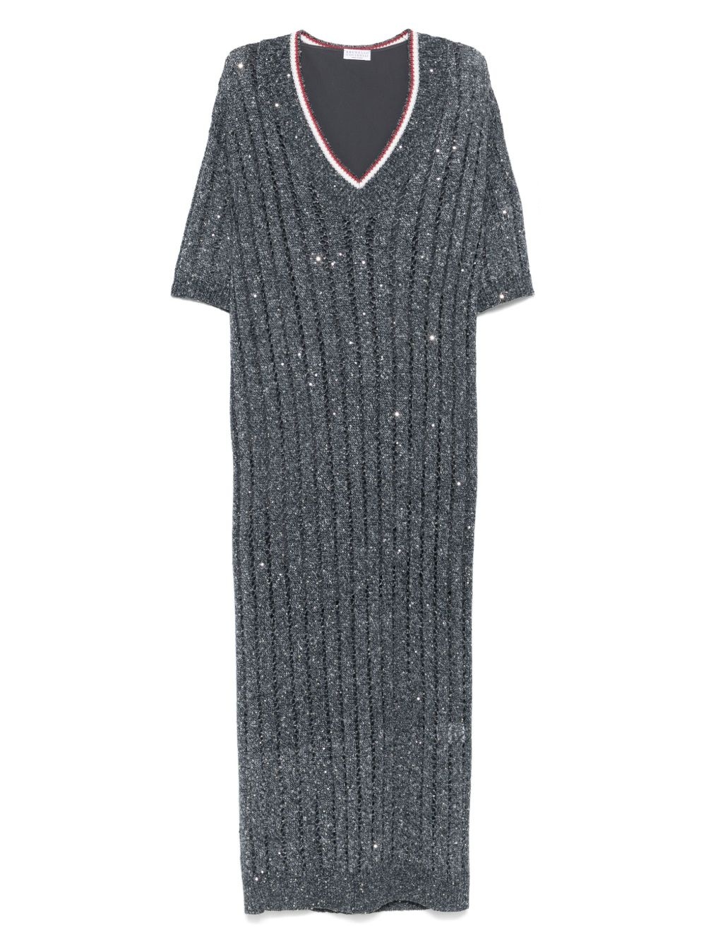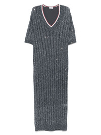 v-neck dress Highlights - Grey - V-neck - Contrasting collar - Short sleeves - Straight hem - Semi-sheer construction Made in Italy Composition Polyester 100%, Linen/Flax 94%, Nylon 6% Washing instructions Hand Wash