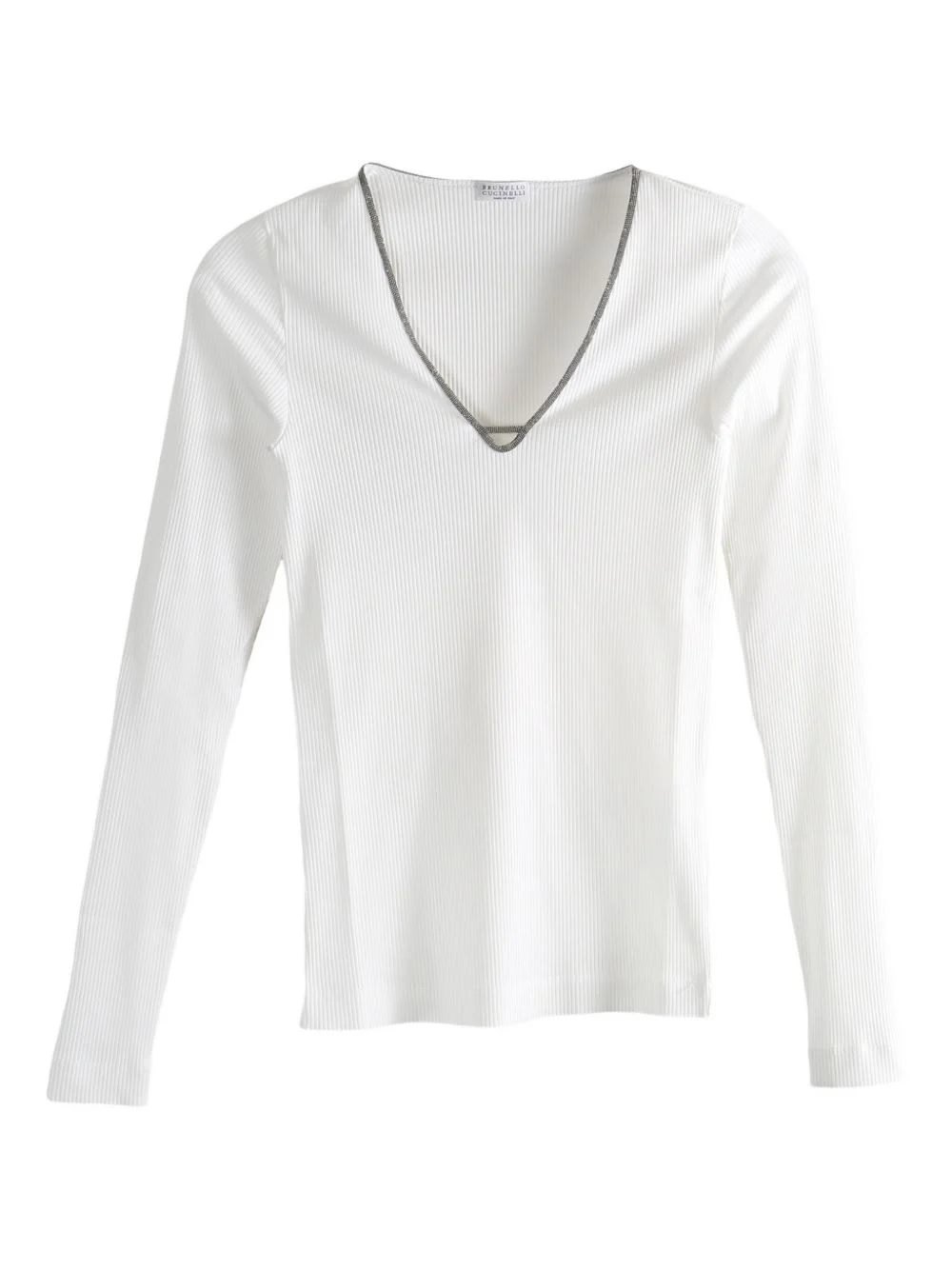 V-neck long-sleeve T-shirt Highlights - White - Cotton-blend - V-neck - Long sleeves Made in Italy Composition Cotton 95%, Elastane 5% Washing instructions Read Manufacturer Guidelines