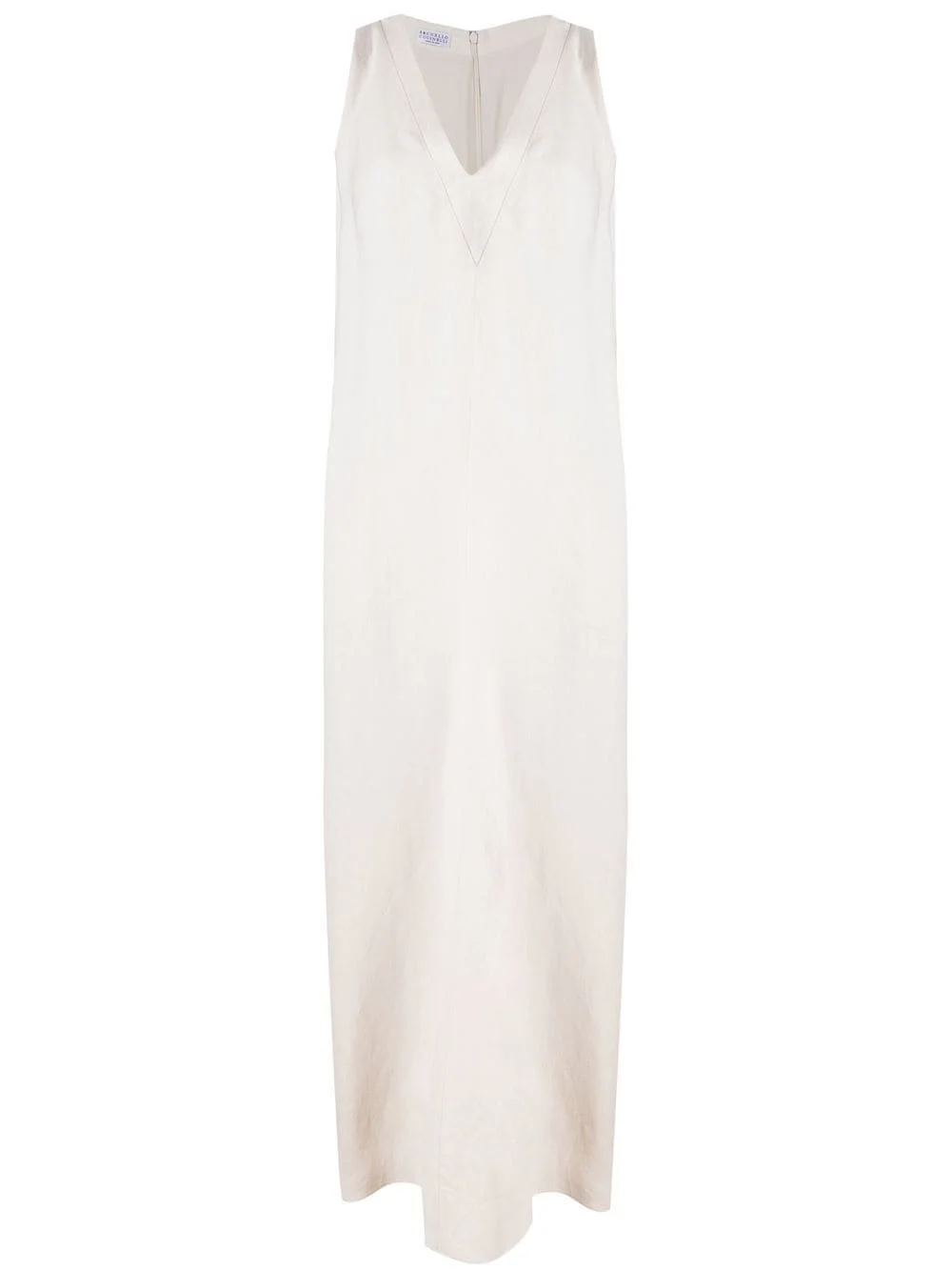 V-neck midi dress Brunello Cucinelli explores a softening of house codes for SS23, bringing equilibrium and balance to each considered garment. Boasting a relaxed design that lends a nod to the brand's penchant for timeless silhouettes, this white midi dress is finished with an elongated side slit. Made in Italy Composition Outer: Eco Brass 100%, Viscose 73%, Linen/Flax 27% Lining: Acetate 74%, Silk 26% Washing instructions Dry Clean Only