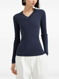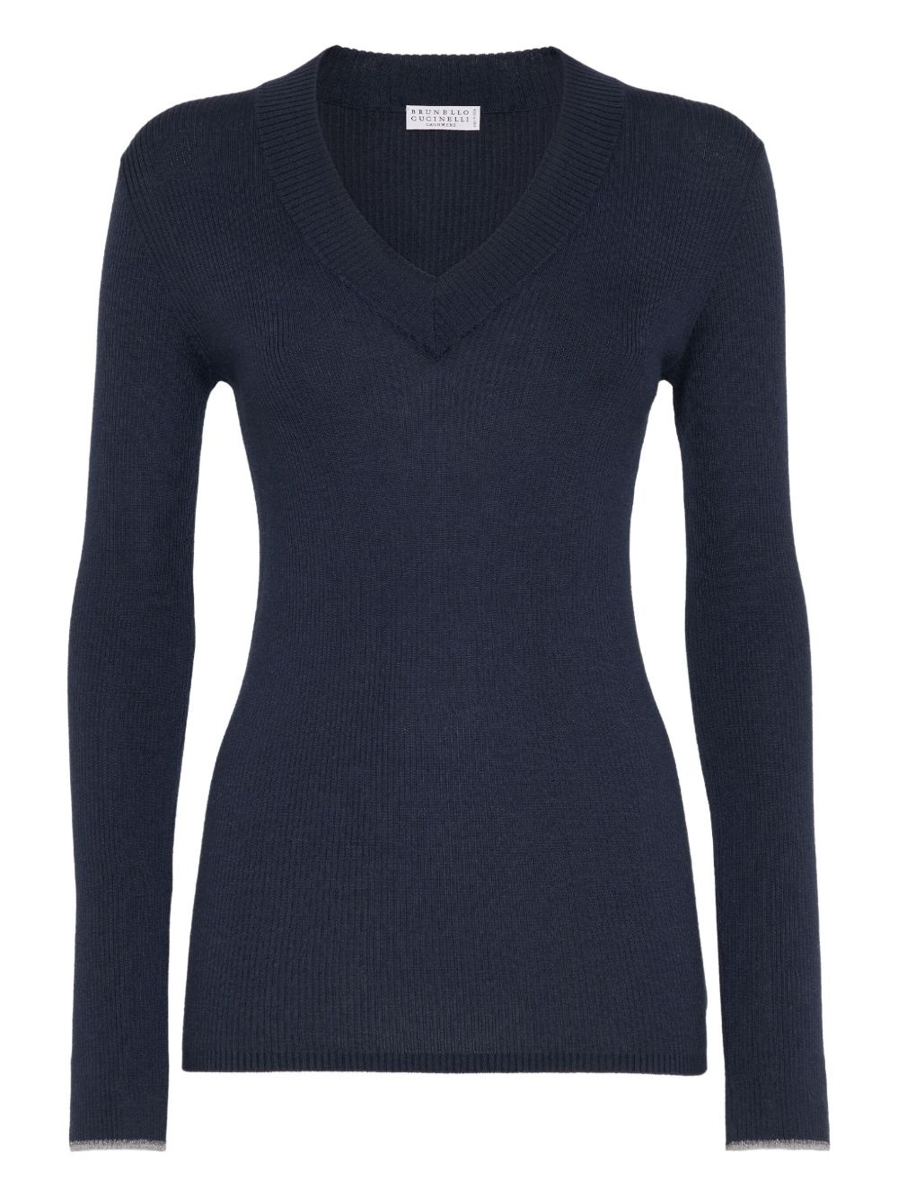 v-neck ribbed sweatshirt Highlights - Navy blue - V-neck - Ribbed texture - Long sleeves - Fine knit Made in Italy Composition Cashmere 70%, Silk 30% Washing instructions Hand Wash
