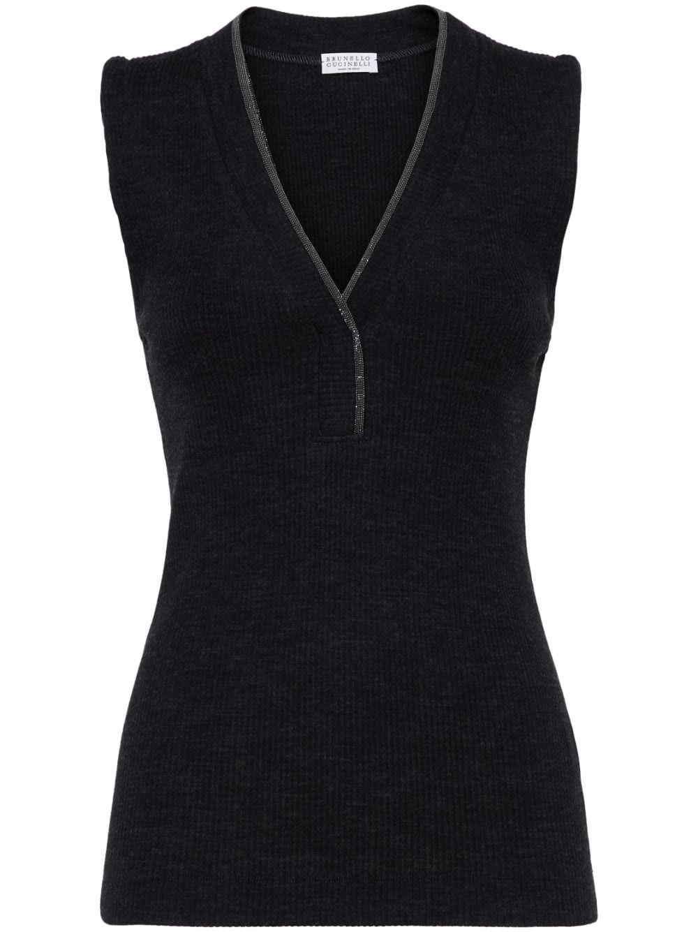 V-neck ribbed vest Highlights - Black - Wool - Ribbed knit - Signature monili chain detail - V-neck - Sleeveless - Straight hem Made in Italy Composition Wool 100% Washing instructions Read Manufacturer Guidelines