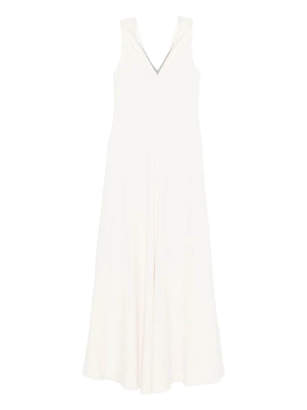 V-neck sleeveless maxi dress Highlights - Off-white - V-neck - Sleeveless - A-line skirt - Floor-length Made in Italy Composition Outer: Acetate 52%, Silk 48% Lining: Acetate 74%, Silk 26% SIZE & FIT Model measurements Height 5 ft 11 in(1.8 m) Bust/Chest 32.28 in(82 cm) Hips 36.22 in(92 cm) Waist 25.19 in(64 cm) Washing instructions Dry Clean Only