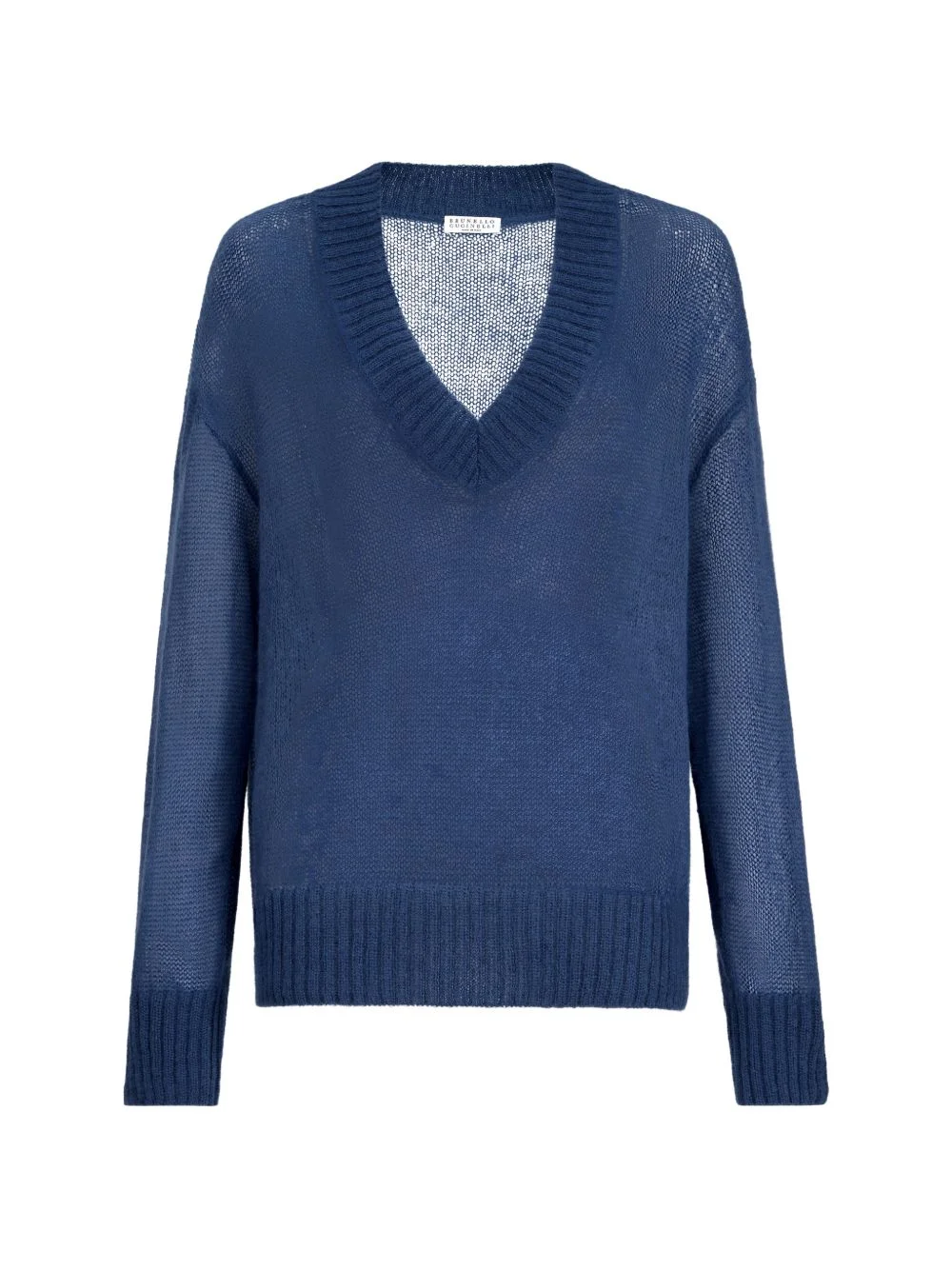 V-neck sweater Highlights - Blue - V-neck - Ribbed hem and cuffs - Long sleeves Made in Italy Composition Mohair 50%, Nylon 36%, Wool 14% Washing instructions Hand Wash