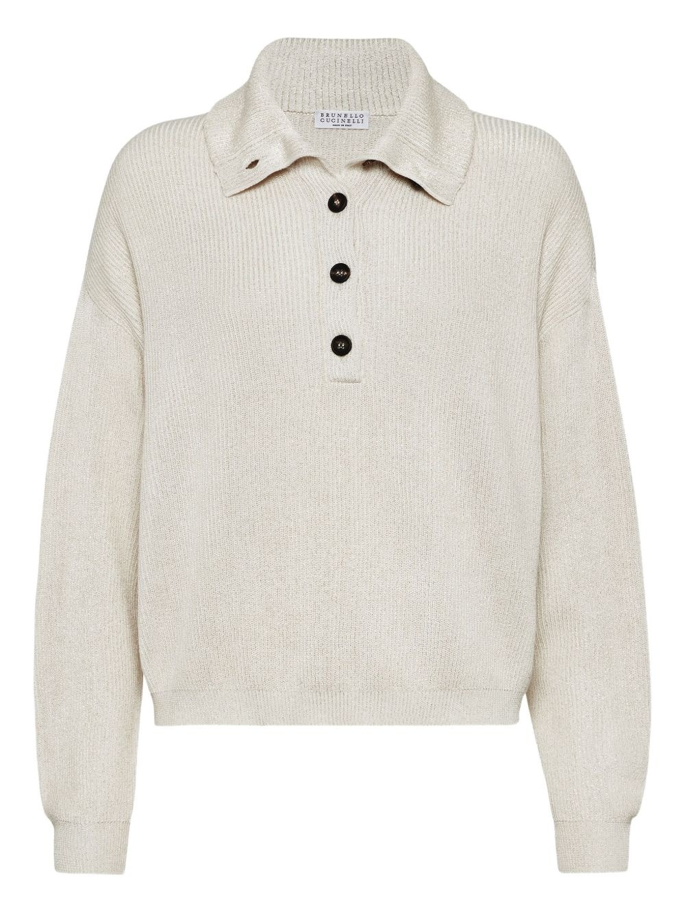 Vanise knitted polo top Highlights - Beige - Short front button fastening - Spread collar - Long sleeves - Ribbed trim Made in Italy Composition Cotton 72%, Viscose 22%, Fabric 6%