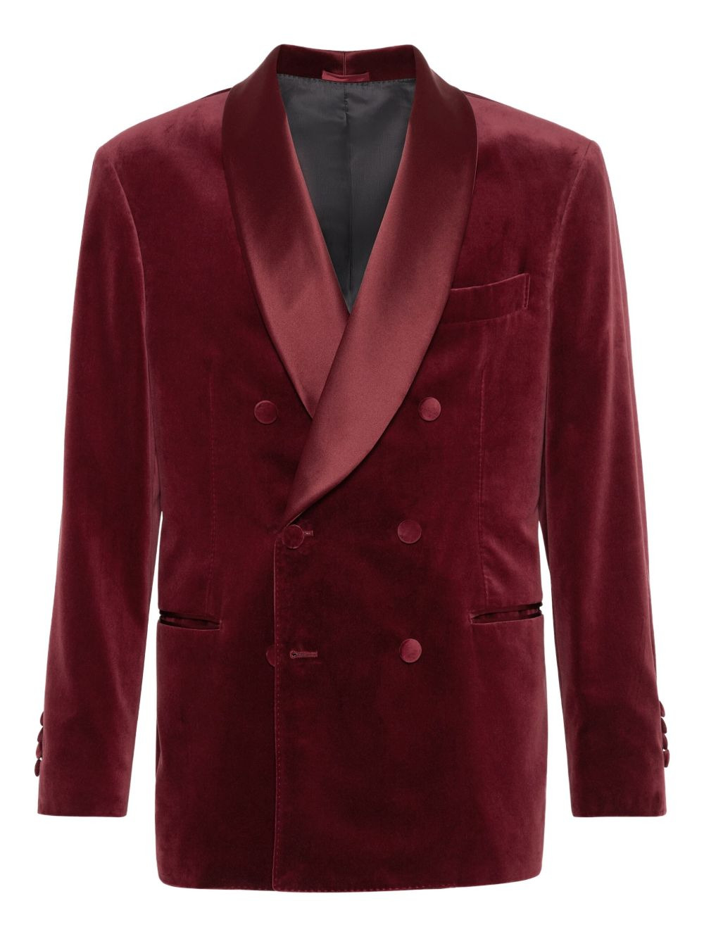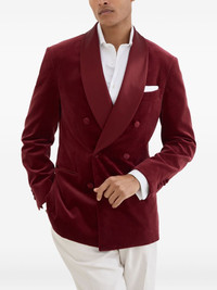 velvet blazer Highlights - Burgundy - Double-breasted button fastening - Buttoned cuffs - Chest welt pocket - English rear vents Made in Italy Composition Cotton 62%, Silk 38% Washing instructions Specialist Cleaning