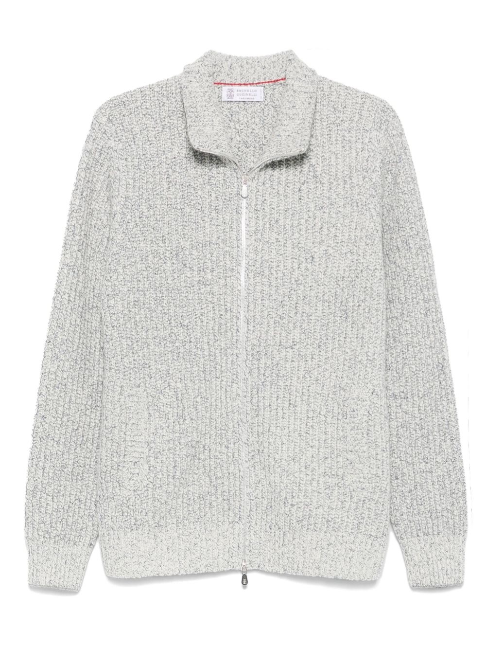 virgin wool-blend sweatshirt Highlights - Grey - Front zip fastening - Long sleeves - Slip pockets to the sides - Ribbed cuffs and hem Made in Italy Composition Virgin Wool 70%, Silk 22%, Cashmere 8% SIZE & FIT Model measurements Height 6 ft 0 in(1.84 m) Bust/Chest 35.82 in(91 cm) Hips 37 in(94 cm) Waist 28.34 in(72 cm) FittingInformation Designed for a regular fit, offering a comfortable loose fit throughout the body The ribbed hem offers a close, comfortable fit Made with a midweight knit, this piece offers some stretch