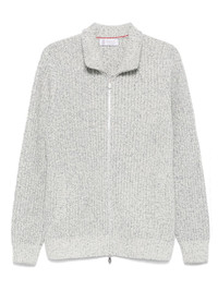 Ribbed Wool, Silk and Cashmere-Blend Zip-Up Cardigan Ecru