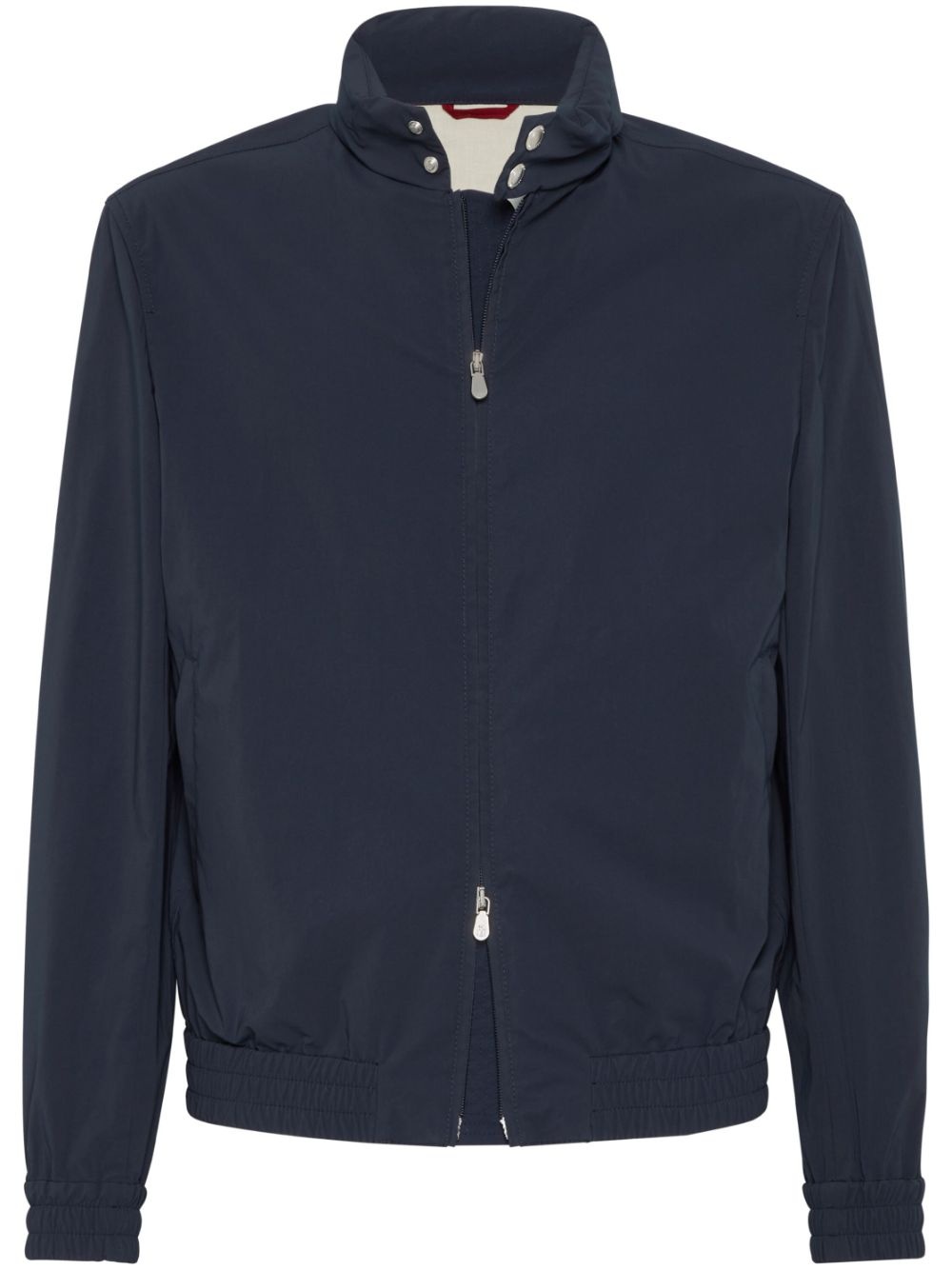 water-resistant bomber jacket Highlights - Navy blue - Front zip fastening - Two side welt pockets - High neck - Long sleeves Made in Italy Composition Cotton 100%