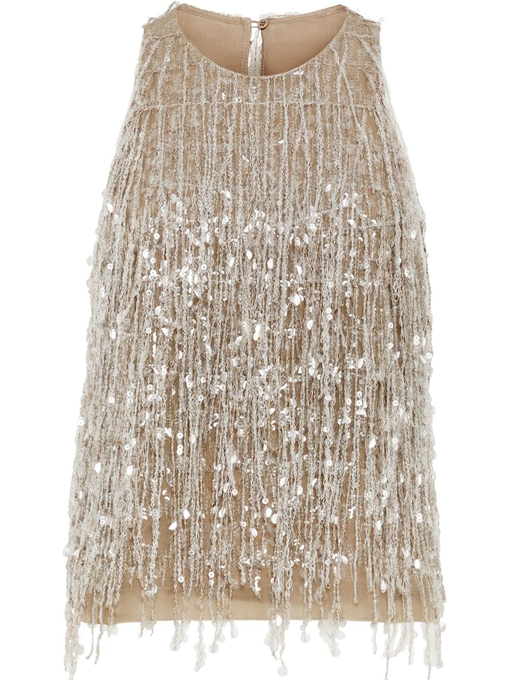 waterfall-embroidery silk top Highlights - Walnut brown - Rear button fastening - Keyhole detail to the rear - Sleeveless - Sequin embellishment Made in Italy Composition Silk 100%