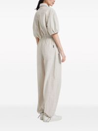 wide-leg cotton jumpsuit Highlights - Off-white - Cotton - Signature monili chain detail - Spread collar - Front zip fastening - Short puff sleeves - Two chest patch pockets - Two side flap pockets - Two rear patch pockets - Wide leg - Drawstring hem Made in Italy Composition Cotton 100%