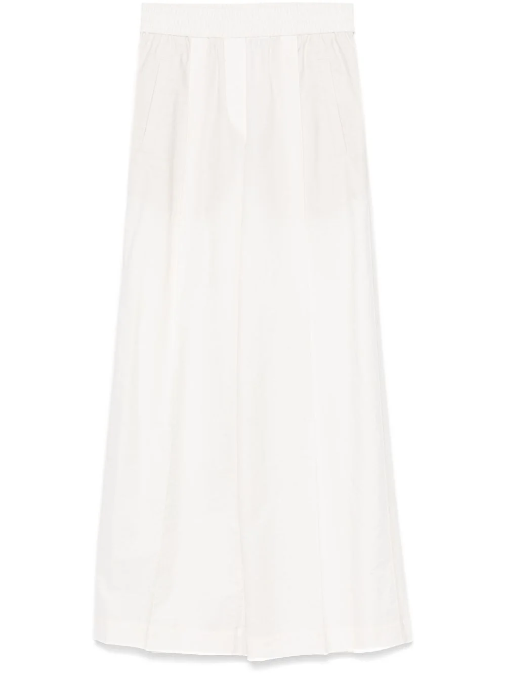 wide-leg trousers Highlights - White - Elasticated waistband - Two side welt pockets - Two rear welt pockets - Pleat detailing Made in Italy Composition Outer: Cotton 87%, Polyamide 13% Lining: Acetate 65%, Polyester 35% SIZE & FIT Model measurements Height 5 ft 9 in(1.75 m) Bust/Chest 34.64 in(88 cm) Hips 36.61 in(93 cm) Waist 26.37 in(67 cm) FittingInformation Designed with a wide-leg cut, these trousers allow for a close fit at the waist and offer a loose and roomy fit over the leg The elasticated waist allows for a comfortable fit Made from a lightweight non-stretch fabric Washing instructions Dry Clean Only
