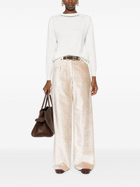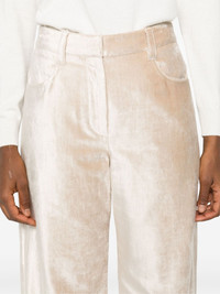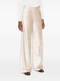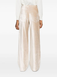 wide-leg velvet trousers Highlights - Sand beige - Velvet - Concealed front button, hook and zip fastening - Belt loops - Wide leg - Two side slit pockets - Two rear patch pockets Made in Italy Composition Outer: Cotton 58%, Viscose 42% Lining: Acetate 65%, Polyester 35% SIZE & FIT Model measurements Height 5 ft 10 in(1.78 m) Bust/Chest 31.49 in(80 cm) Hips 37 in(94 cm) Waist 23.62 in(60 cm) FittingInformation Designed with a wide-leg cut, these trousers allow for a close fit at the waist and offer a loose and roomy fit over the leg Made from a midweight non-stretch fabric This piece fits true to size – take your usual size Washing instructions Dry Clean Only
