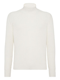 wide-ribbed sweater Highlights - Light beige - High neck - Ribbed cuffs and hem - Long sleeves Made in Italy Composition Cashmere 100%