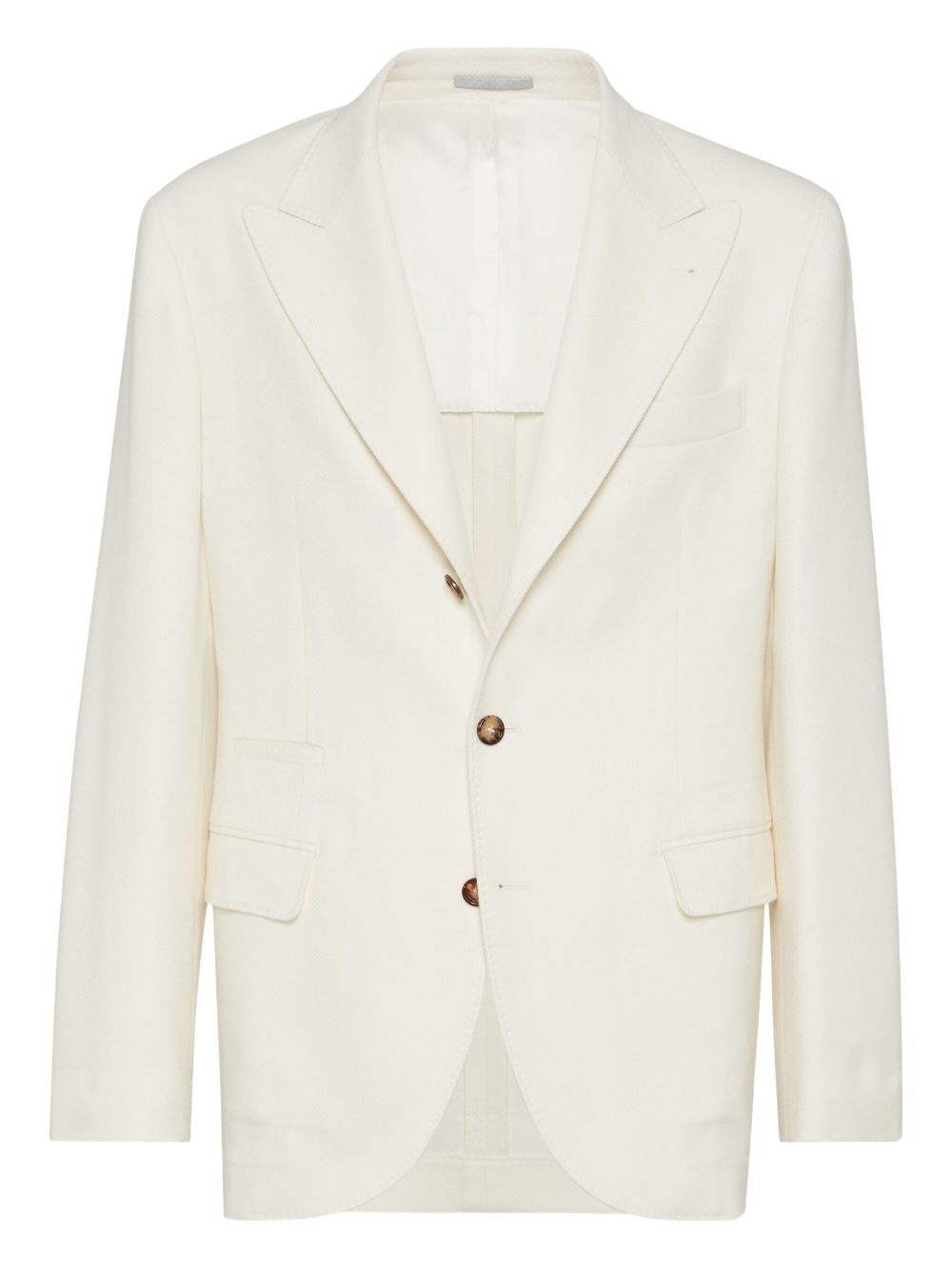 wool-cashmere blazer Highlights - White - Front button fastening - Chest welt pocket - Two side flap pockets - Peak lapels Made in Italy Composition Wool 95%, Cashmere 5%