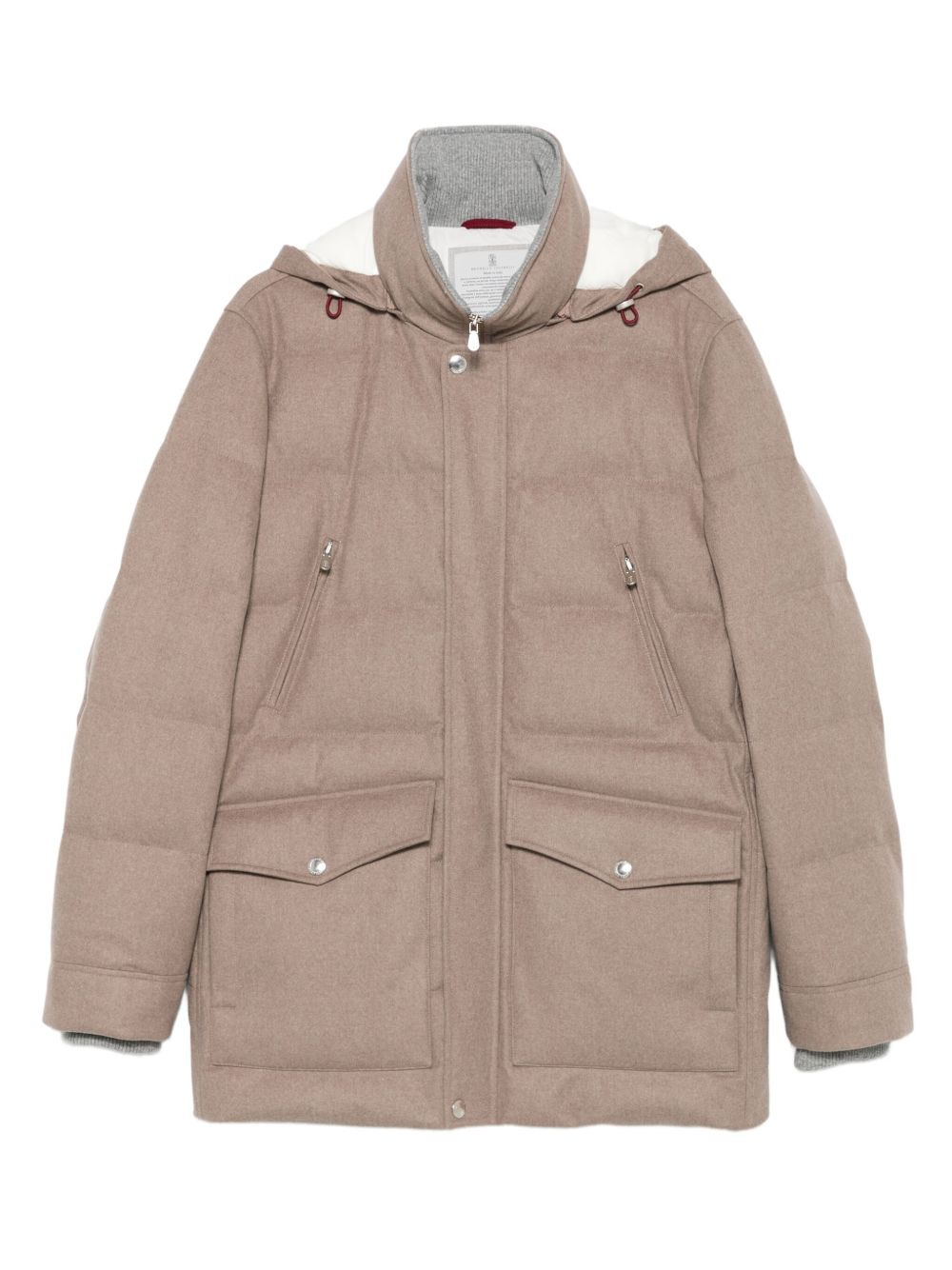 wool hooded quilted jacket Highlights - Beige - Quilted design - Hooded neckline - Flap pockets - Concealed zip fastening - Long sleeves Made in Italy Composition Wool 100% SIZE & FIT Model measurements Height 6 ft 1 in(1.85 m) Bust/Chest 35.82 in(91 cm) Hips 37.79 in(96 cm) Waist 29.13 in(74 cm) Washing instructions Read Manufacturer Guidelines