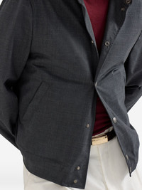 wool jacket Highlights - Dark grey - Virgin wool - Snap buttons - Point collar - Welt pocket Made in Italy Composition Virgin Wool 100% Washing instructions Specialist Cleaning
