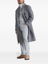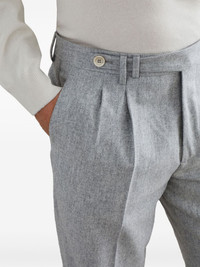 Virgin wool flannel leisure fit trousers with double pleats and tabbed waistband