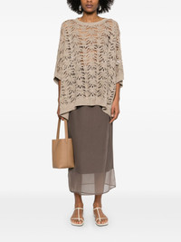 Organza-trimmed cotton-blend midi wrap skirt Brown