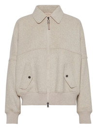 zip-front bomber jacket Highlights - Light beige - Zip fastening - Patch pockets - Ribbed hem - Dropped shoulders Made in Italy Composition Cashmere 50%, Wool 50% Washing instructions Specialist Cleaning