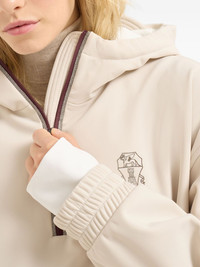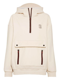 zip hoodie Highlights - Beige - Hood - Front pocket - Zip fastening - Elasticated hem - Logo detail Made in Italy Composition Outer: Nylon 85%, Elastane 15% Lining: Polyester 100% Washing instructions Read Manufacturer Guidelines