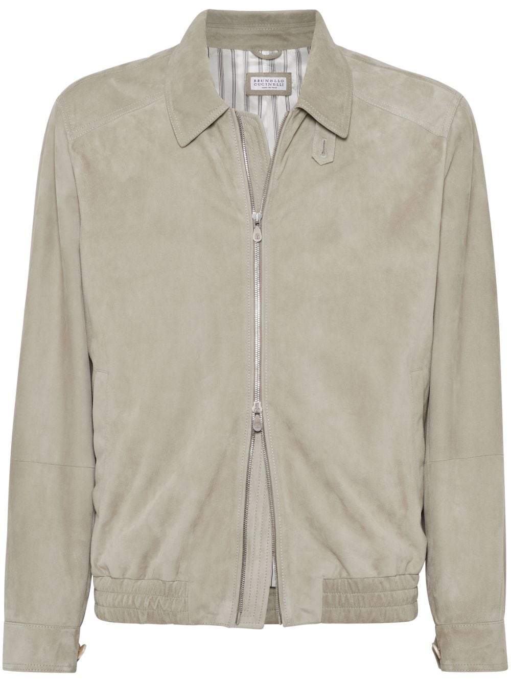 zip-up suede jacket Highlights - Green - Suede - Pointed flat collar - Two-way zip fastening - Long sleeves - Buttoned cuffs - Two side welt pockets - Elasticated hem Made in Italy Composition Leather 100% SIZE & FIT Measurement CHEST 46.85 in(119 cm) SLEEVE LENGTH 34.64 in(88 cm) LENGTH 26.18 in(66.5 cm) Shoulder Width 19.09 in(48.5 cm) Washing instructions Read Manufacturer Guidelines
