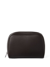 zippered wash bag Highlights - Dark brown - Rounded silhouette - Top zip closure - Embossed logo detail - Main compartment Made in Italy Composition Outer: Leather 100%