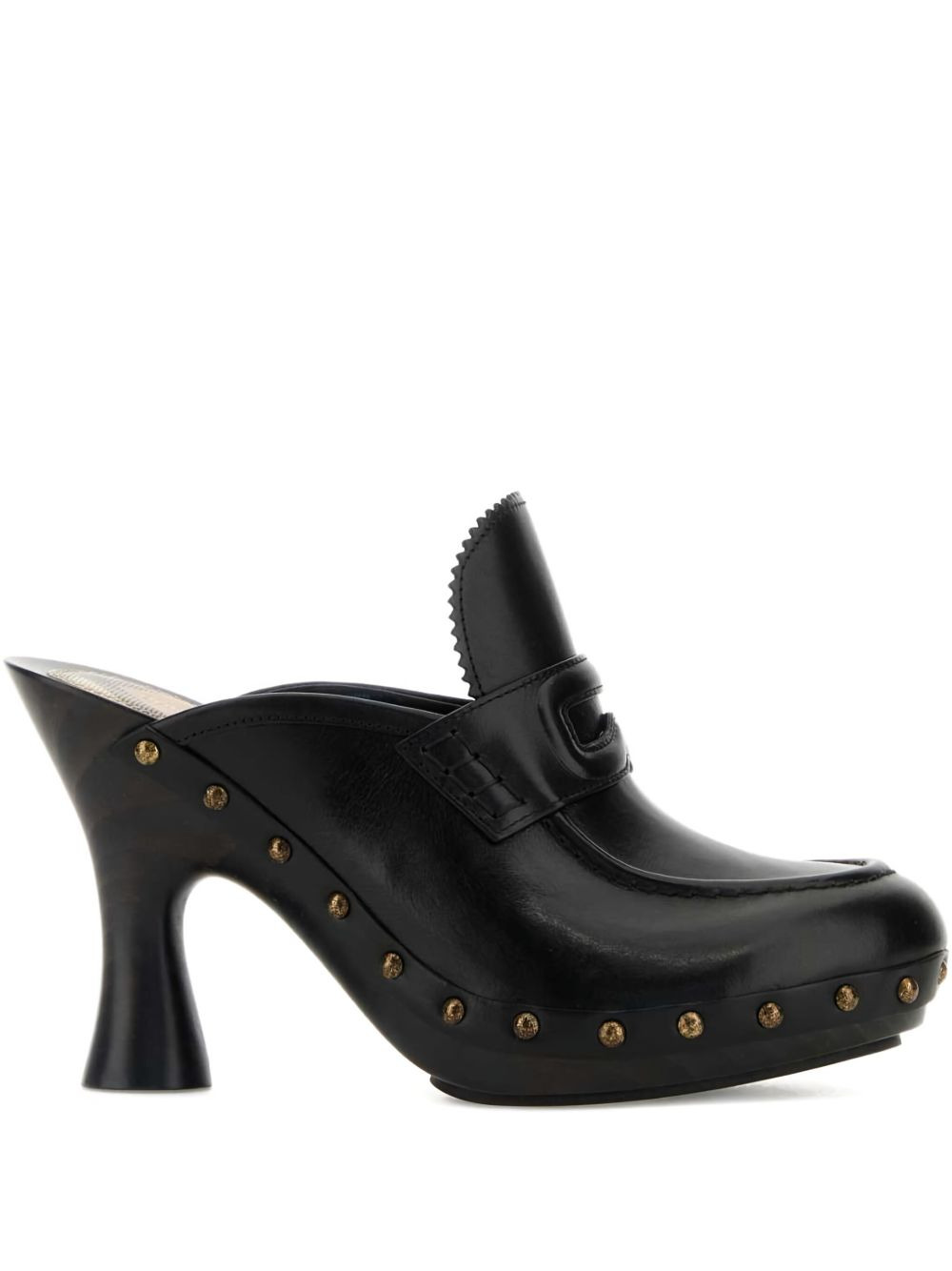 100mm leather mules Highlights - Black - Slip-on style - Round toe - High heel - Studded trim Made in Italy Composition Outer: Leather 100% Sole: Rubber 100% Lining: Leather 100% SIZE & FIT Measurement HEEL 3.93 in(10 cm)