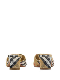 45mm Sloane heeled sandals Highlights - Beige - Check pattern - Block heel - Almond toe - This piece comes complete with a protective dust bag. Made in Italy Composition Outer: Polyester 74%, Cotton 21%, Metallized Polyester 3%, Polyamide 2% Lining: Sheepskin 100% Sole: Calf Leather 100%