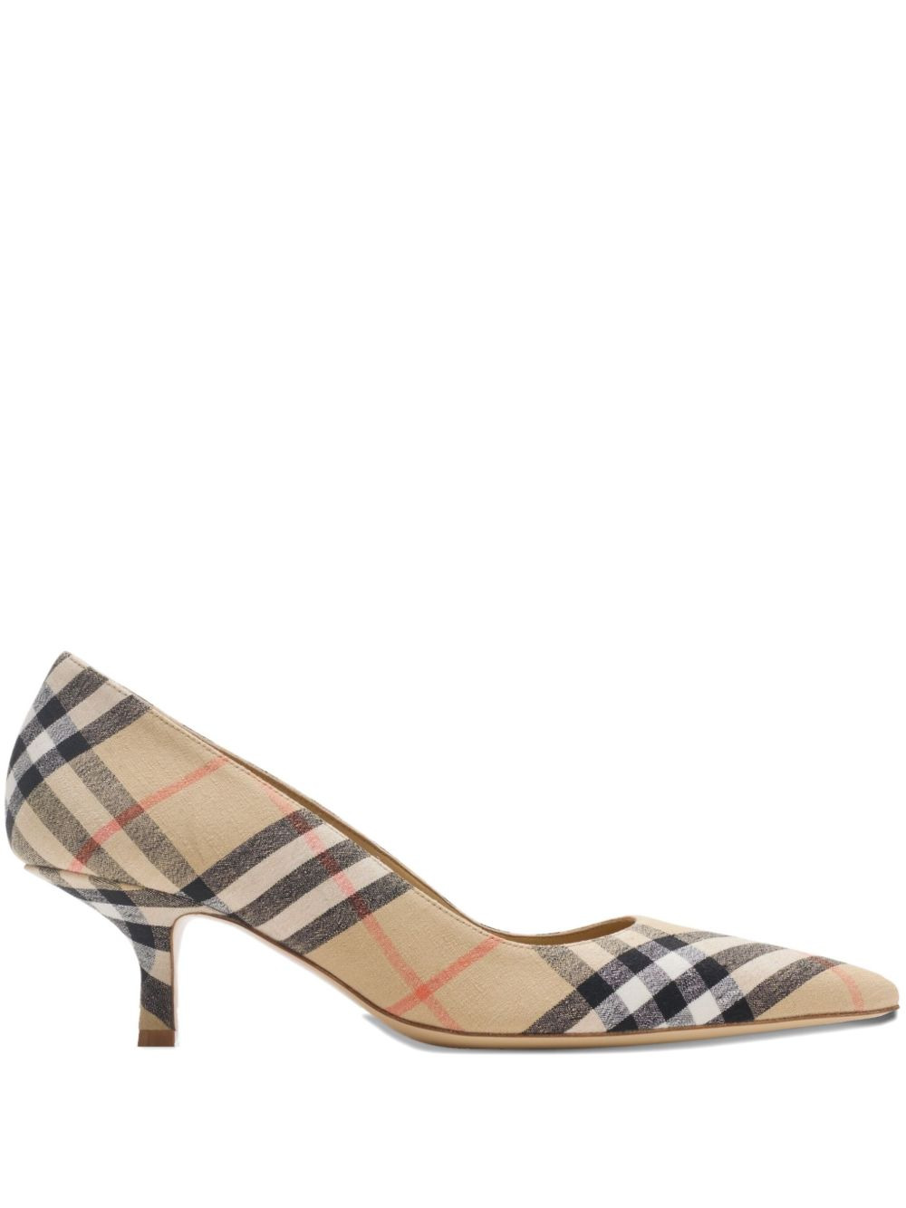55mm Check Dame pumps Highlights - Beige - Check pattern - Pointed toe - Kitten heel - Quilted leather insole - Equestrian knight design sole Made in Italy Composition Outer: Linen/Flax 97%, Elastane 3% Lining: Sheepskin 90%, Goat Skin 10% Sole: Leather 100% SIZE & FIT Measurement HEEL 2.16 in(5.5 cm)
