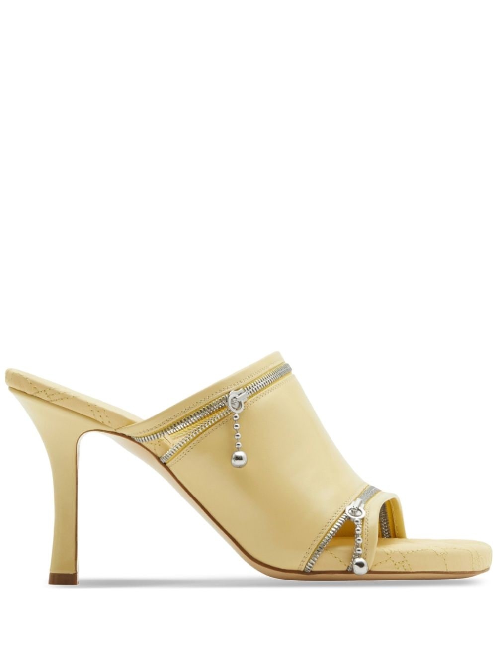 85mm decorative-zip leather sandals Highlights - Yellow - Calf leather - Sheepskin - Square open toe - Decorative zip detailing - Slip-on style - Branded leather insole - 85mm high heel Made in Italy Composition Outer: Calf Leather 100% Lining: Sheepskin 100% Sole: Leather 100% SIZE & FIT Measurement HEEL 3.34 in(8.5 cm)