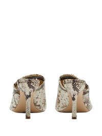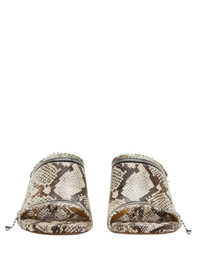 85mm snakeskin leather sandals Highlights - Beige - Calf leather - Sheepskin - Snakeskin effect - Square open toe - Logo at the sole - Zip details - Slip-on style - 85mm high stiletto heel Made in Italy Composition Lining: Sheepskin 50%, Calf Leather 50% Outer: Calf Leather 100% Sole: Leather 100% SIZE & FIT Measurement HEEL 3.34 in(8.5 cm)
