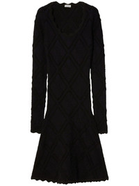 Aran long-sleeve knitted dress Boasting a minimalist aesthetic, Burberry presents this Aran knitted dress. Spun from black stretch-wool, the knee-length style is enhanced with scalloped edges and a flared hem. Highlights - Black - Wool blend - Scoop neck - Scallop edge - Long sleeves - Flared hem - Knee-length Made in Italy Composition Wool 72%, Polyamide 18%, Polyester 9%, Spandex/Elastane 1% SIZE & FIT Measurement SLEEVE LENGTH 25.98 in(66 cm) HIPS 27.99 in(71.1 cm) LENGTH 40.98 in(104.1 cm) WAIST 25 in(63.5 cm) BUST 30 in(76.2 cm)