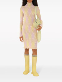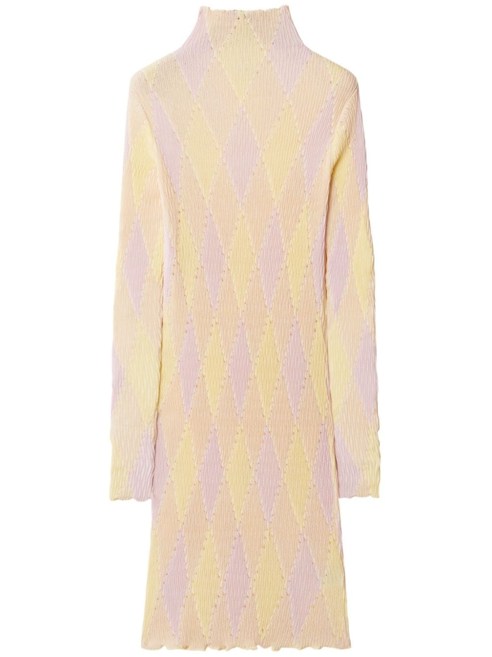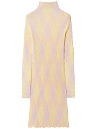 argyle ribbed-knit dress Highlights - Light pink/ecru - Cotton-silk blend - Ribbed knit - Argyle check pattern - Roll neck - Long sleeves - Knee-length - Lettuce hem Made in Italy Composition Cotton 60%, Silk 40%