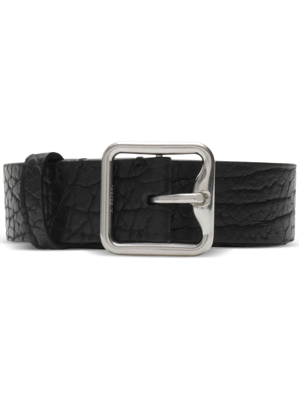 B-buckle leather belt Highlights - Black - Calf leather - Pebbled texture - Signature b buckle - Silver-tone hardware - Punched holes - Belt loops - Adjustable fit Made in Italy Composition Outer: Calf Leather 100%, Palladium Plated Brass 100% Lining: Calf Leather 100%