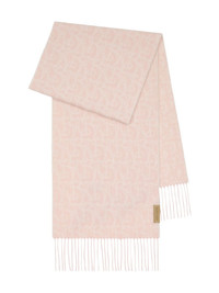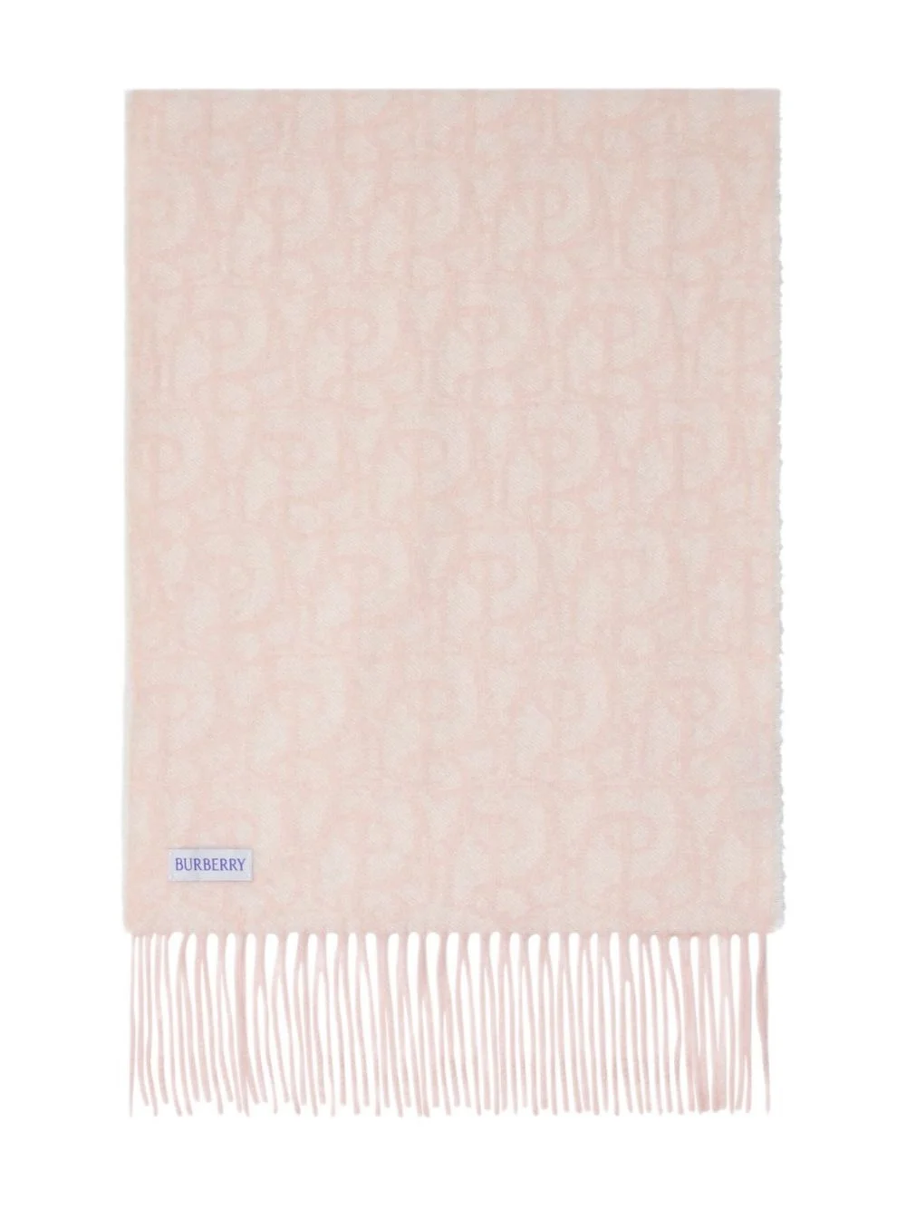 B Charm fringed scarf Highlights - Peony pink - Jacquard-woven - B charm pattern - Fringed edges - Suede tag Made in United Kingdom Composition Cashmere 100%, Calf Suede 100% SIZE & FIT Measurement LENGTH 66.14 in(168 cm) WIDTH 11.81 in(30 cm) Washing instructions Specialist Cleaning