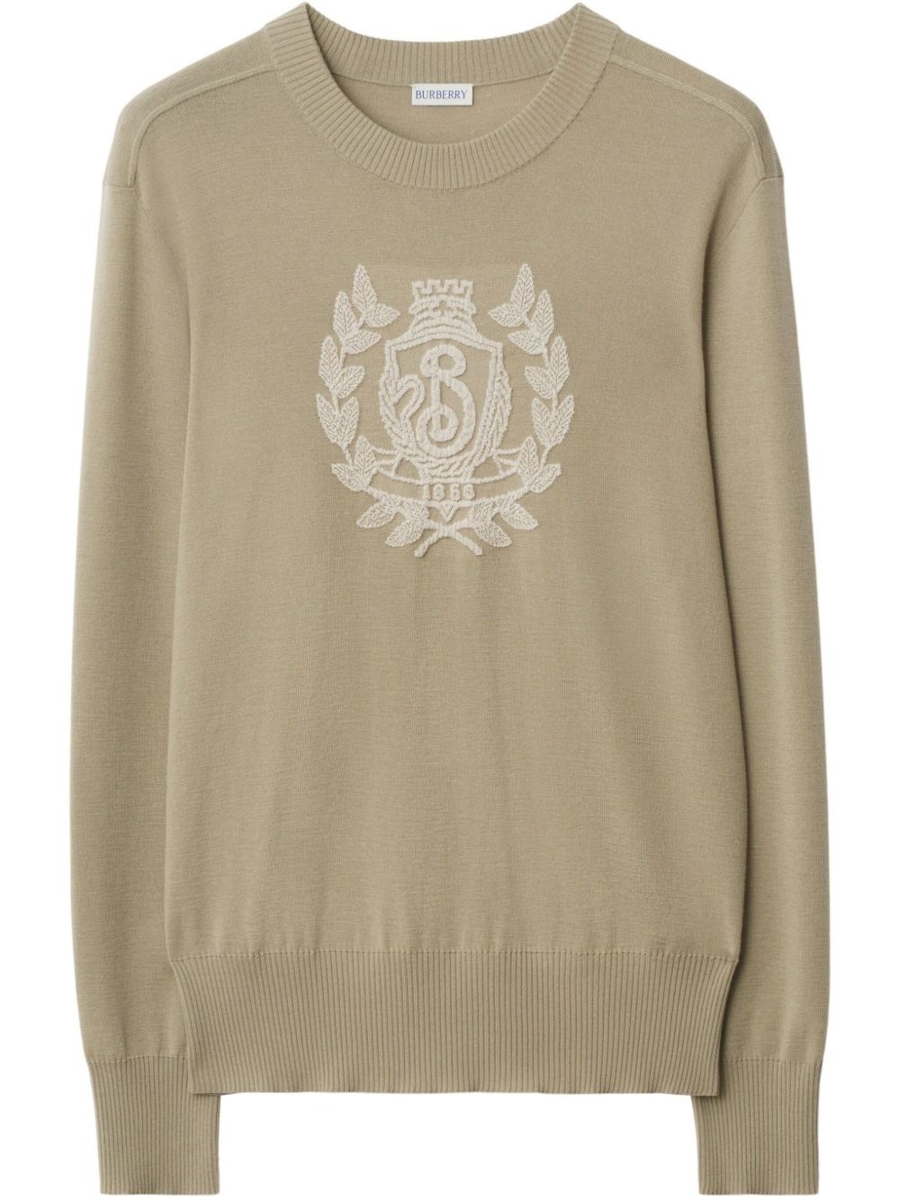 B Crest sweater Highlights - Sesame beige - Ribbed cuffs and hem - Crew neck - Long sleeves Imported Composition Wool 100%, Silk 91%, Polyamide 7%, Elastane 2%