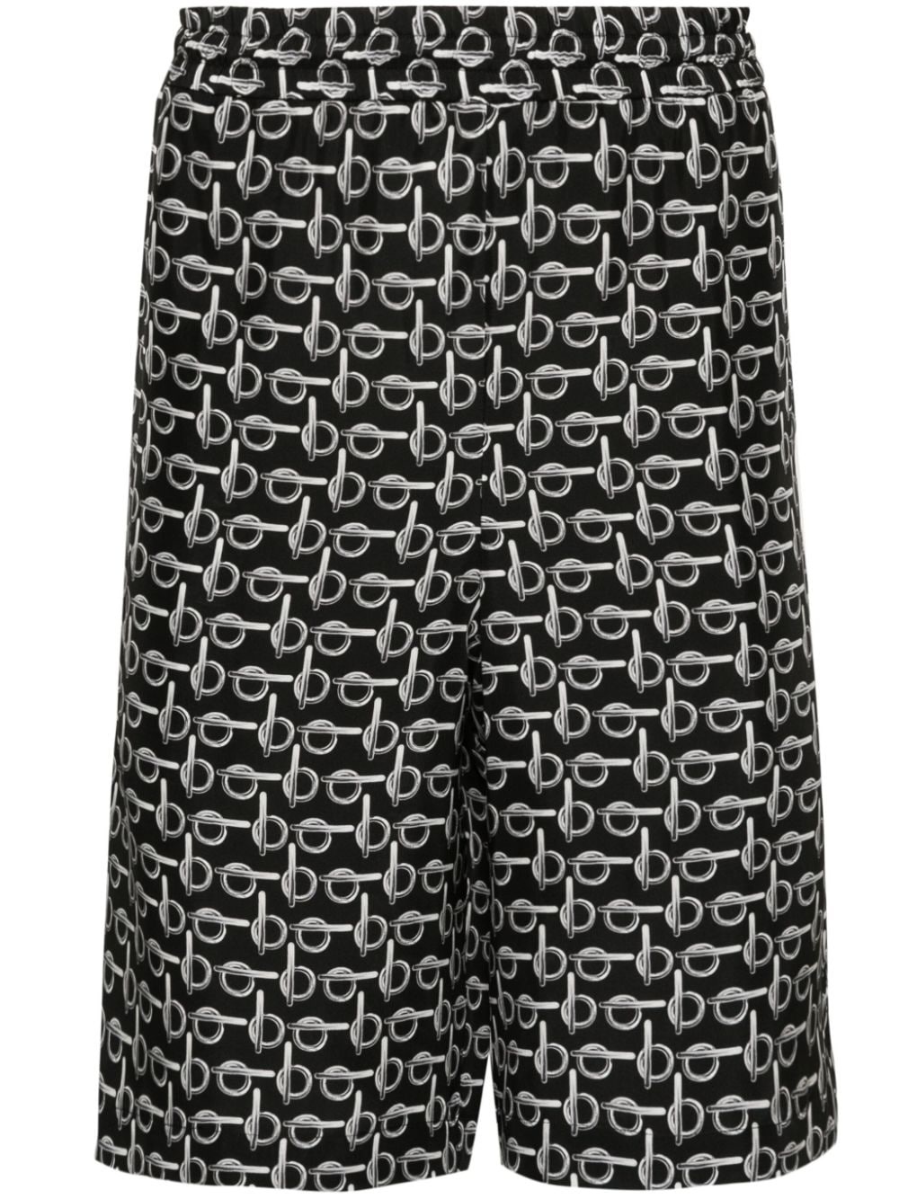 B elasticated-waistband silk shorts Highlights - Black/white/grey - Silk - Satin finish - All-over "b" closure pattern - Elasticated waistband - Two diagonal pockets to the sides - Rear patch pocket - Knee-length - Drawstring fastening Made in Italy Composition Silk 100% SIZE & FIT Model measurements Height 6 ft 2 in(1.87 m) Bust/Chest 33.46 in(85 cm) Hips 36.22 in(92 cm) Waist 29.52 in(75 cm) FittingInformation Designed with a wide leg, offering a loose and roomy fit The elasticated waist allows for a comfortable fit Made from a lightweight non-stretch fabric This piece fits true to size – take your usual size
