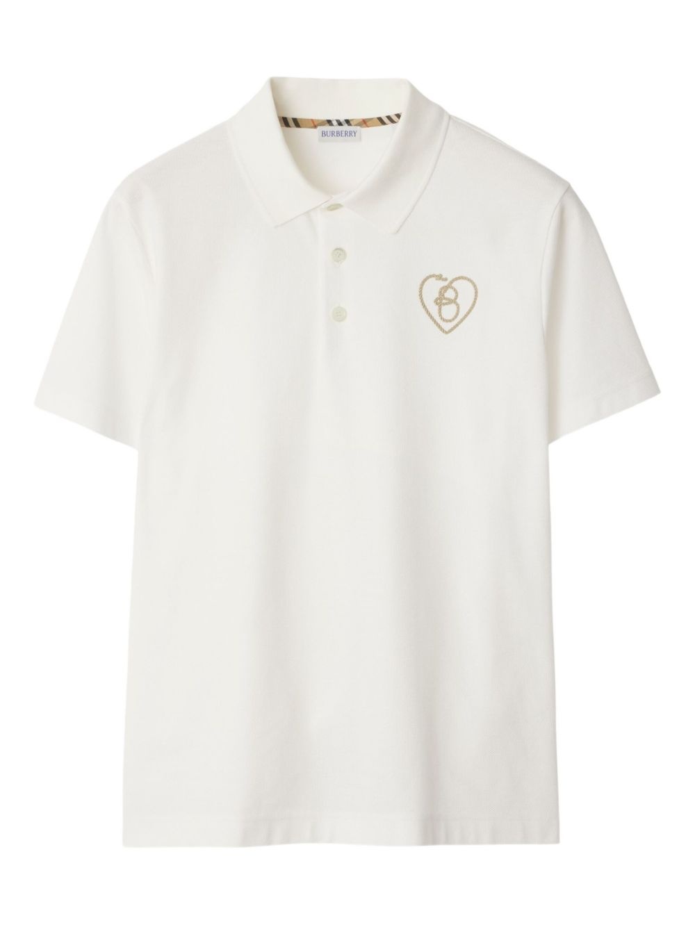 B Heart cotton polo shirt Highlights - White - Front button placket - Short sleeves - Straight hem Imported Composition Cotton 97%, Elastane 3% Washing instructions Machine Wash