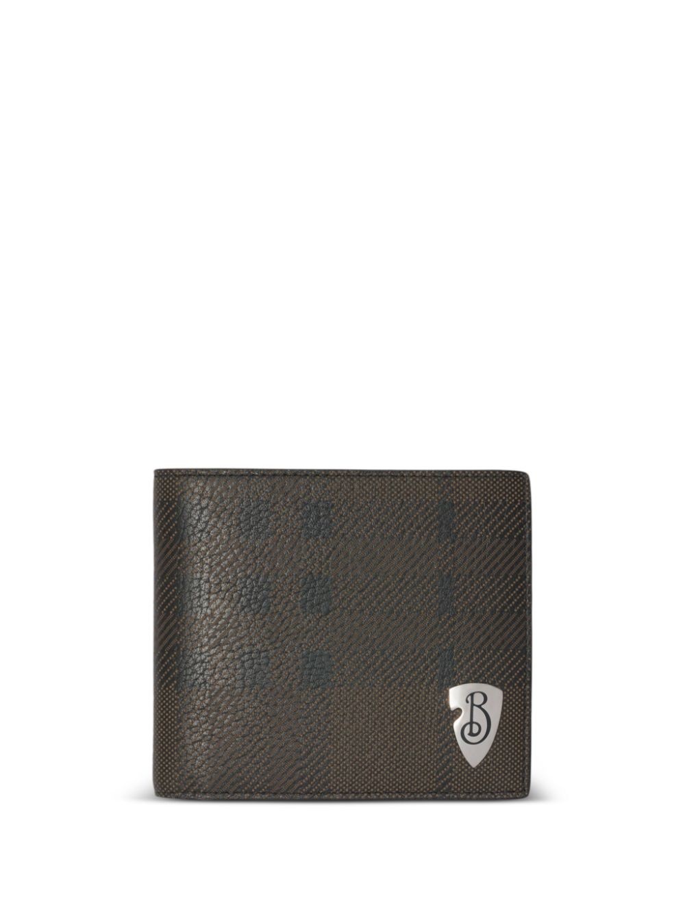 B-Shield bi-fold wallet Highlights - Cedar brown - Lambskin - Pebbled texture - Vintage check pattern - Bi-fold design - Signature b-shield plaque - Eight internal card slots - Internal note compartment - Two internal slip pockets - Debossed internal logo Imported Composition Outer: Calf Leather 100% Lining: Lambskin 100%, Polyester 53%, Polyurethane 47% SIZE & FIT Measurement LENGTH 4.33 in(11 cm) WIDTH 3.74 in(9.5 cm)