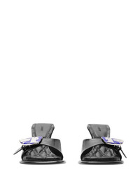 Bay leather sandals Burberry's Bay mules feature a wide strap with a shield plaque enamelled with the brand's famous Equestrian Knight Design. They're made in Italy from calf leather, in black. Highlights - Black - Calf leather - Leather - Signature equestrian knight motif - Open toe - Side buckle fastening - Slip-on style - Branded insole - High heel Made in Italy Composition Leather 100% SIZE & FIT Measurement HEEL 3.14 in(8 cm)
