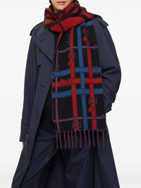Belt Check cashmere scarf Highlights - Blue and red - Cashmere - Belt check pattern - Fringed ends - Rectangular shape Made In Italy Composition Cashmere 100% SIZE & FIT Measurement LENGTH 66.92 in(170 cm) WIDTH 11.81 in(30 cm) Washing instructions Dry Clean Only