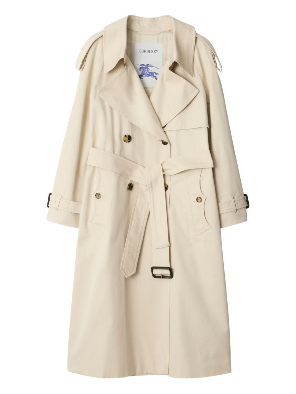 belted double-breasted trench coat Highlights - Clam beige - Double-breasted button closure - Epaulettes - Buckled belt - Side buttoned welt pockets - Belted cuffs Made in United Kingdom Composition Lining: Cotton 100%, Cupro 100% Outer: Cotton 100%, Calf Leather 100%, Buffalo Horn 100% Washing instructions Read Manufacturer Guidelines