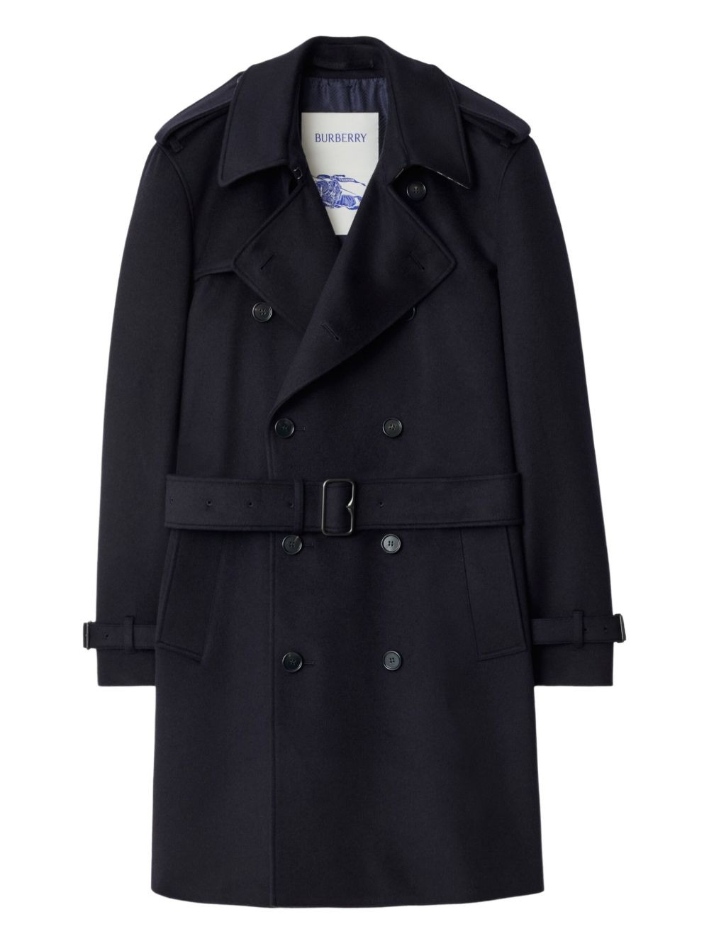 belted trench coat Highlights - Navy blue - Double-breasted button closure - Hook collar closure - Buckled belt - Belted cuffs - Back vent Imported Composition Fabric 100% Washing instructions Read Manufacturer Guidelines