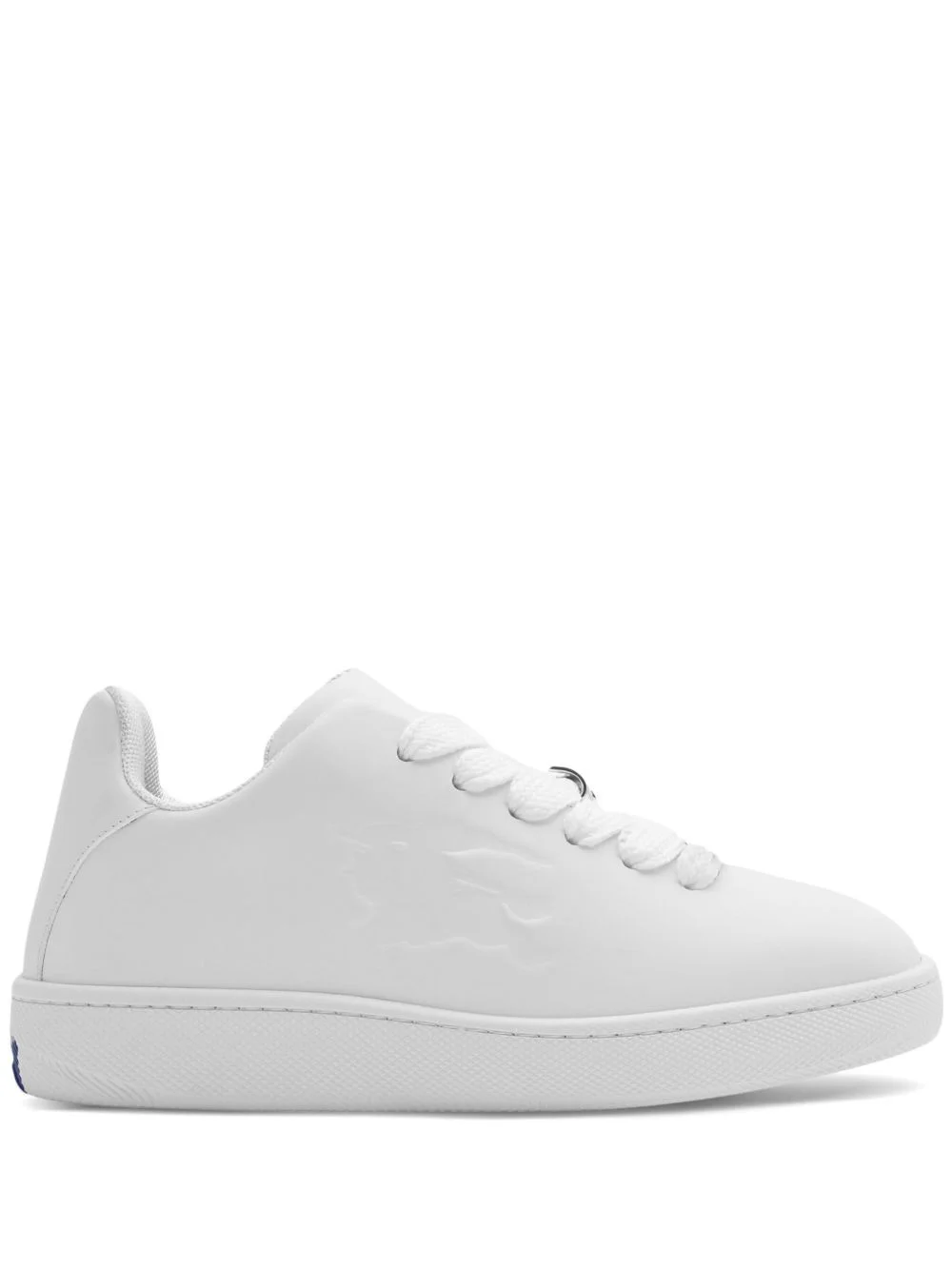 Box leather sneakers Highlights - Optical white - Calf leather - Signature equestrian knight motif - Debossed logo to the side - Round toe - Front lace-up fastening - Branded insole - Flat rubber sole Made in Italy Composition Leather 100%